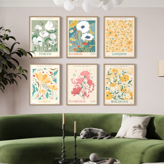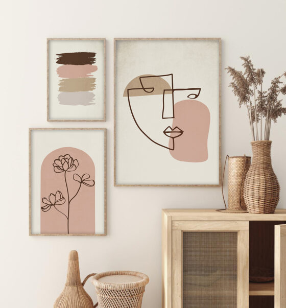 Set de Cuadros Flores Caras Rayas